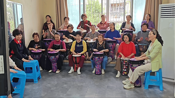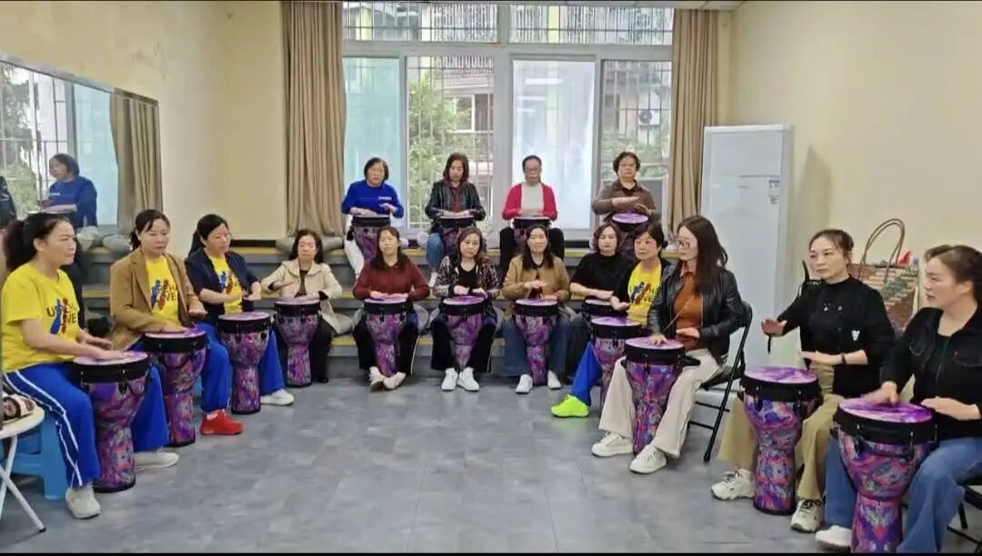 年华是最好的陈酿,热爱是最美的篇章。在灵通学校龙透关校区成年人非洲鼓2班的课堂上,姐姐们首次练习便全程投入,状态拉满!她们紧跟节奏,尽情拍击,在热情洋溢的鼓点中全然释放自我,那份沉浸式的投入与活力,让整个课堂都充满了动人的能量。