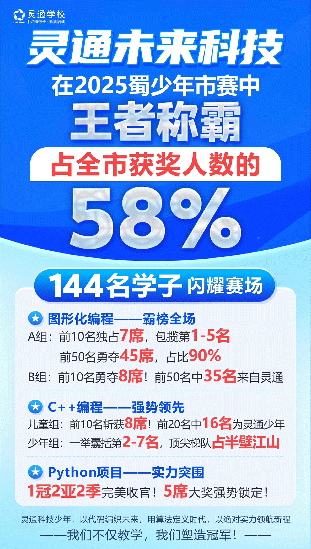 这不仅仅是一次成绩的展示,更是我们对教育本质的践行:科技赋能未来,思维决定高度。 在灵通,我们珍视每一个科技梦想,用专业的体系护航每一次成长。