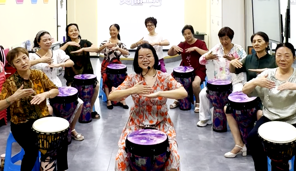 “学习不设限,人生无边界!”在罗春华老师的带领下,非洲鼓结合手势舞专业迎来新进展——龙透关校区首个非洲鼓班已于昨日正式开课!九位阿姨踊跃参与,热情洋溢。大家既通过非洲鼓的节奏锻炼身体,又能借助手势舞的练习提升协调能力。