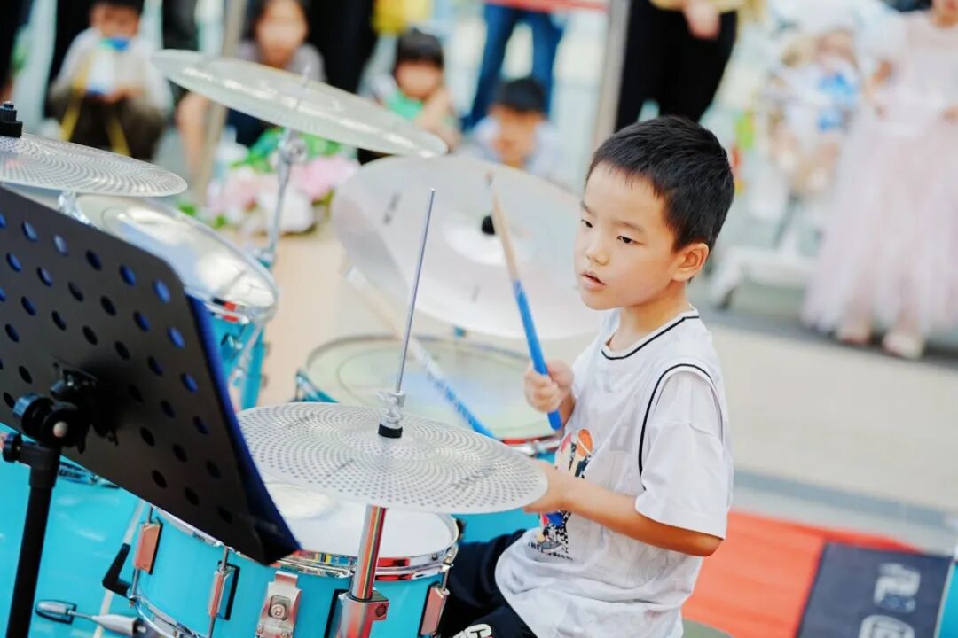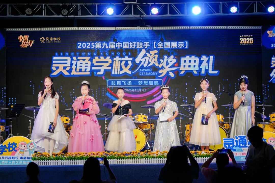 同一天,万达广场内,2025第九届中国好鼓手【全国总展示】灵通学校颁奖典礼火热进行。小朋友们画着精致妆容,早早候场,在舞台上奉献了一首首精彩的架子鼓演出,那是鼓舞飞扬,更是梦想起航。