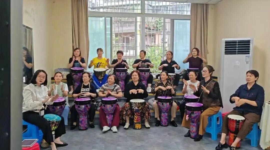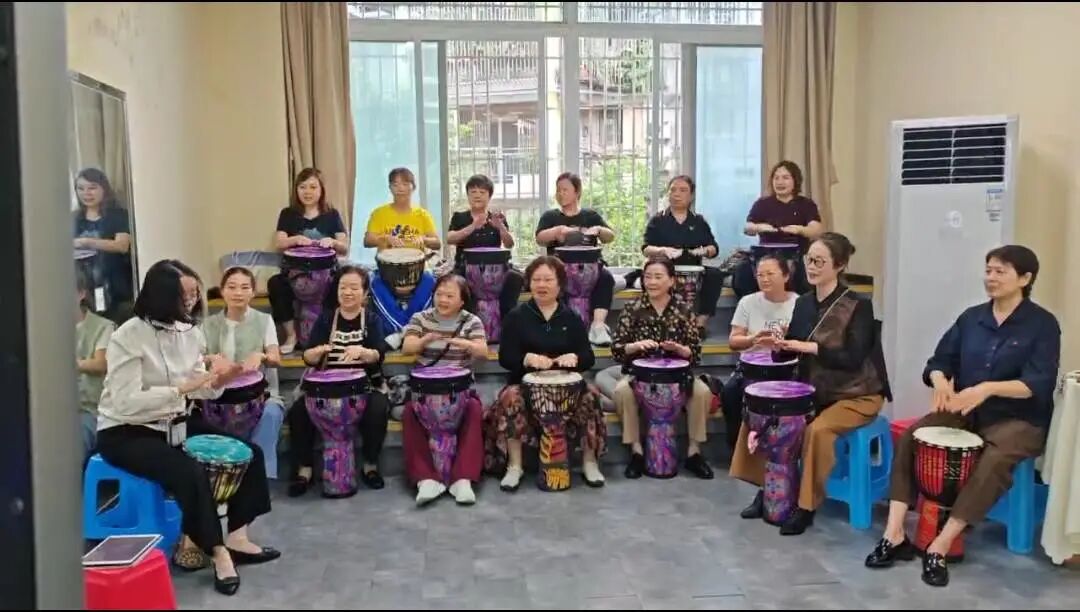 艺术不问年龄,快乐不分早晚。龙透关校区第二个中老年非洲鼓兴趣班如约开启!明亮的教室里坐满了热爱生活、渴望解锁新技能的阿姨们,大家精神抖擞,跟随节奏把平凡日子敲击成充满韵律的散文诗。在阵阵鼓声中,我们一起把日子敲得声声入耳、步步生花~