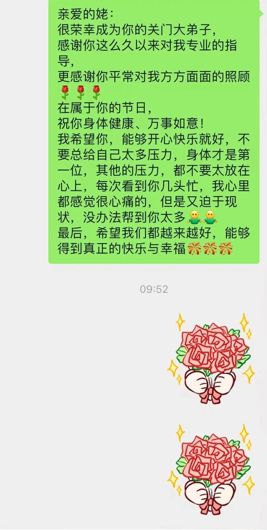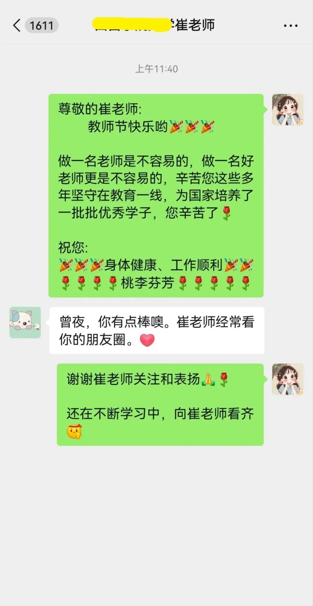 每一句“节日快乐”,都不是空泛的祝福,更像一份 “双向奔赴” 的回应 —— 老师用知识点亮他们的路,他们却用这些细碎的温暖,悄悄照亮了老师们日复一日的讲台时光。
