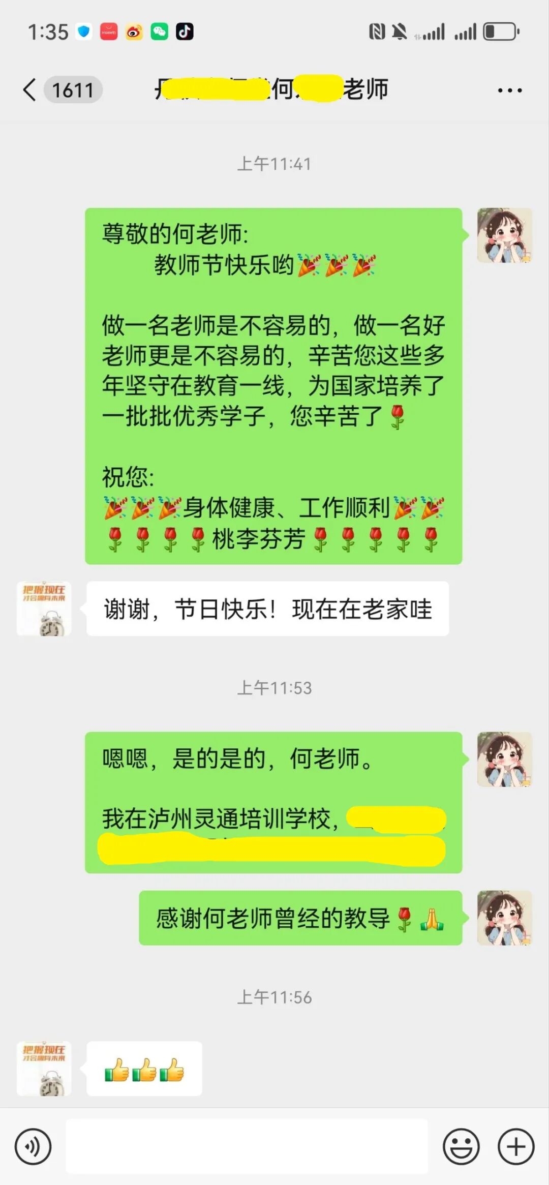 在这个特殊的日子里,灵通的学子们送来了他们对老师的真挚祝福。
